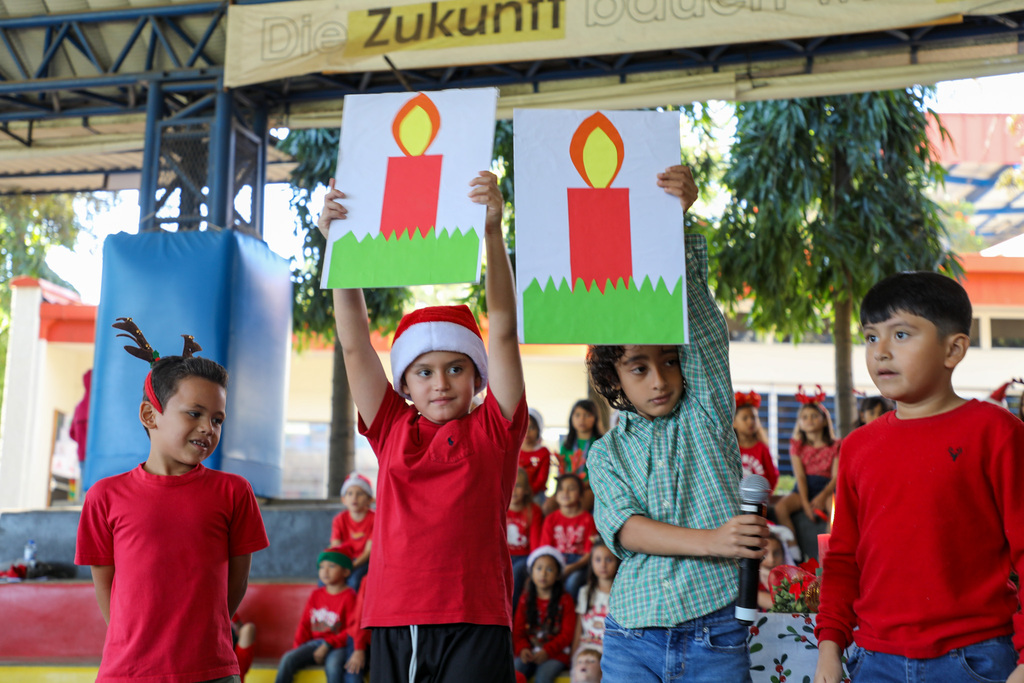 El inicio estuvo a cargo de los alumnos de 3° grado, quienes inauguraron esta tradición con villancicos que marcaron el comienzo de la temporada. En este contexto, también se realizó la entrega de donaciones recolectadas por los estudiantes de 1° y 2° grado durante la celebración de Sankt Martin, destinadas a niños de la comunidad El Jobal, reflejando el compromiso solidario que caracteriza a nuestra comunidad educativa.