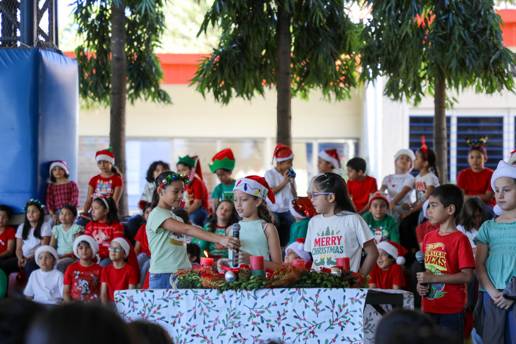 El cierre estuvo a cargo de los alumnos de 4° grado, quienes encendieron la cuarta vela en su última participación en esta celebración como parte de la primaria. A través de una puesta en escena que integró música, poesía y elementos culturales, la comunidad vivió un momento que reflejó la esencia bicultural de la Escuela, acercando a todos a la celebración de la Navidad desde una experiencia compartida.
