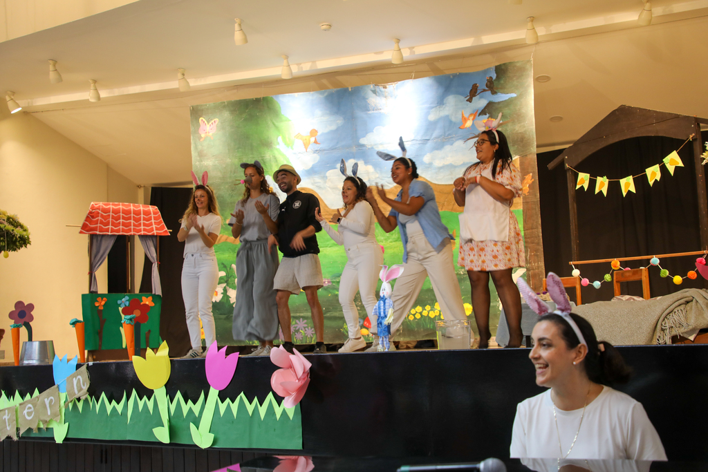 En parvularia, los niños vivieron la tradición a través de una obra de teatro que dio paso a la búsqueda de huevos por los espacios del kínder. Con entusiasmo y mucho movimiento, cada pequeño recorrió los rincones del salón siguiendo las pistas que el Osterhase dejó a su paso.