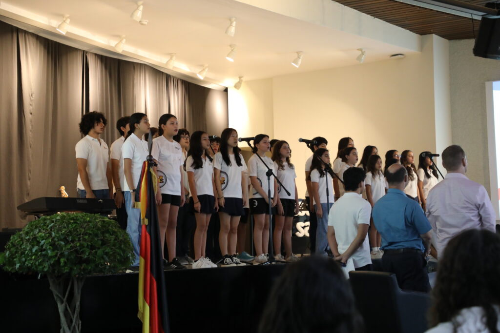 In der Grundschule begann der Tag mit einer feierlichen Veranstaltung, begleitet von der Banda Pro und der Banda Choro. Anschließend nahmen die Kinder an kreativen Workshops teil, die ihnen ermöglichten, Kultur, Werte und Traditionen Deutschlands zu entdecken – und so Neugier und interkulturellen Respekt schon früh zu fördern.